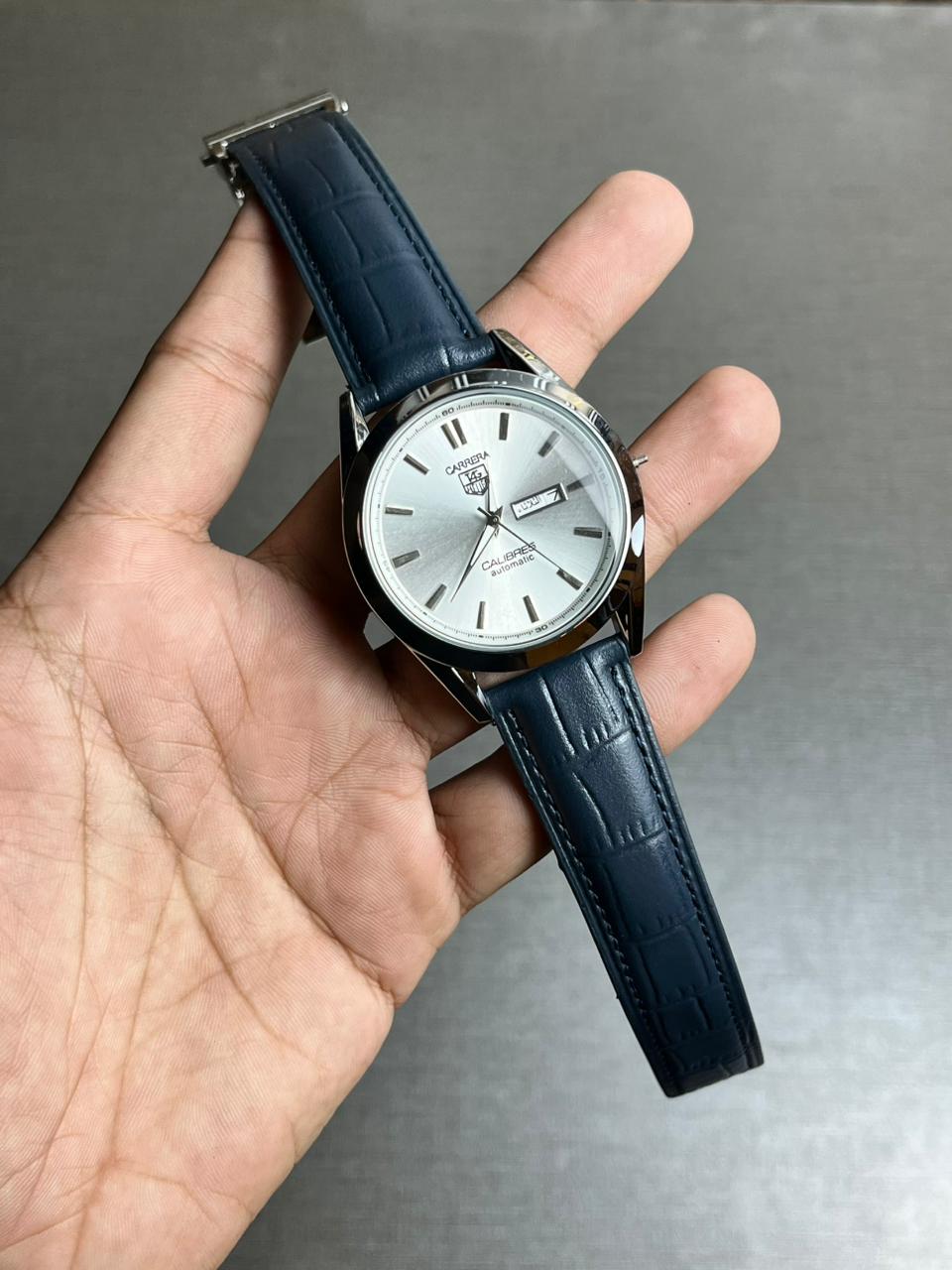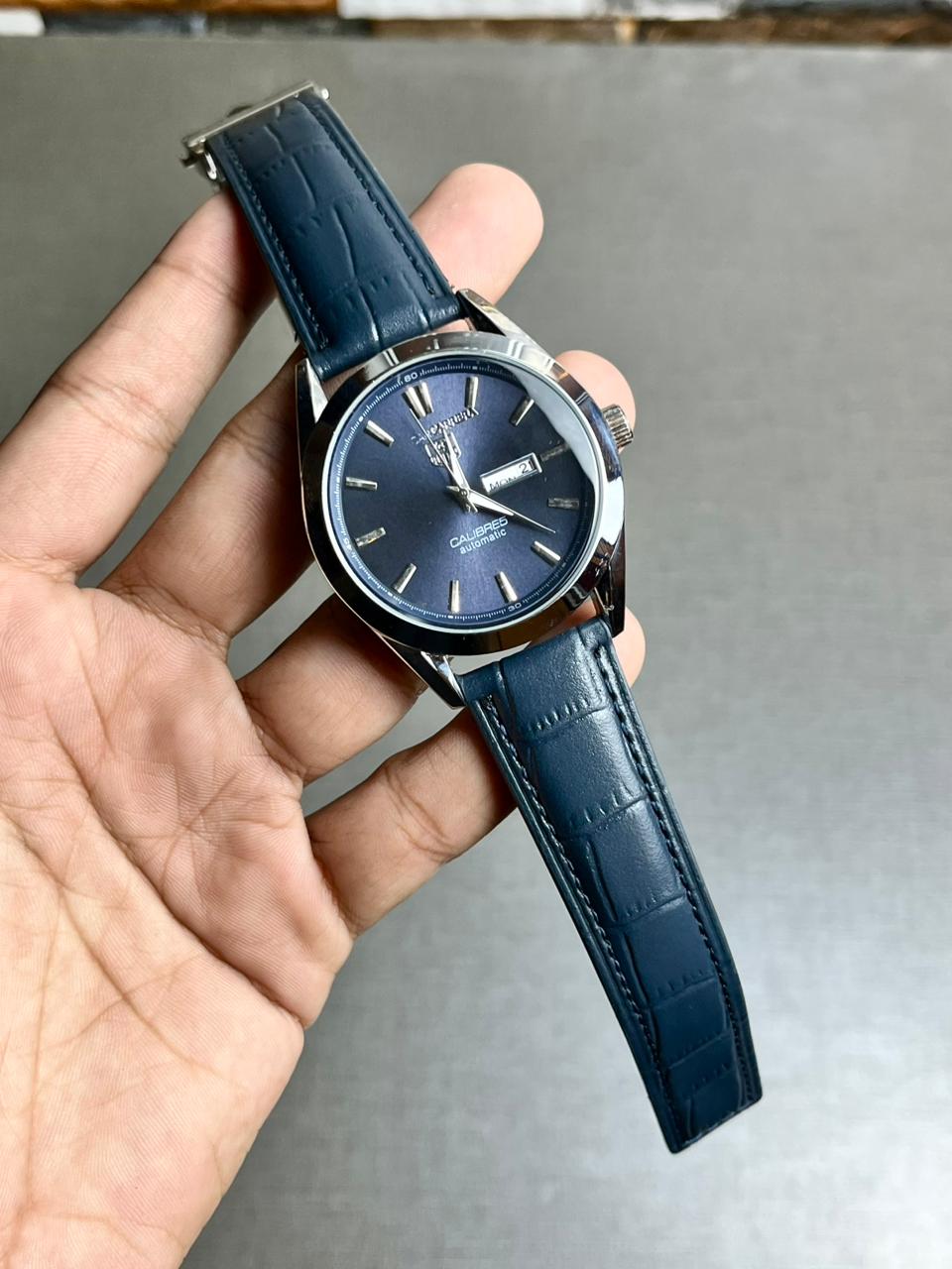 The Tag Heuer Calibre 5 Day-Date Leather Strap Watch combines luxury and precision with modern functionality. Featuring a quartz movement for accurate timekeeping, this elegant timepiece boasts a day and date display for added convenience. The premium leather strap offers a sophisticated look, while the Master Lock system ensures security and durability. A perfect blend of style and performance, this watch is ideal for any occasion.